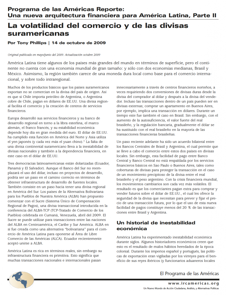 Parte uno y dos de una series de dos que escribí sobre NAFR (La Nueva Arquitectura Financiera para América del Sur y el Caribe). Fue la parte básica financiera para mi tesis de la UBA en MERCOSUR/UNASUR.